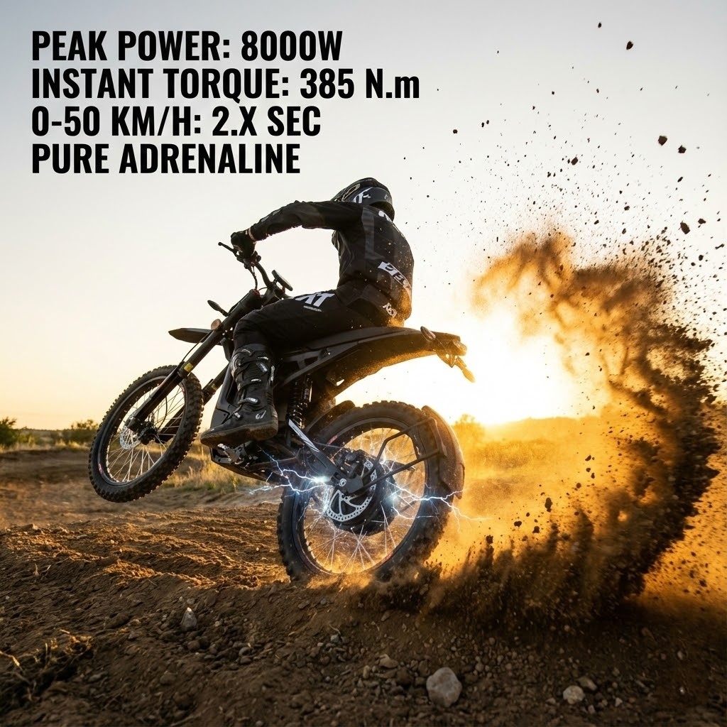 8000W Peak Power – ≥85 km/h top speed, 385 N·m torque, climbs up to 65°