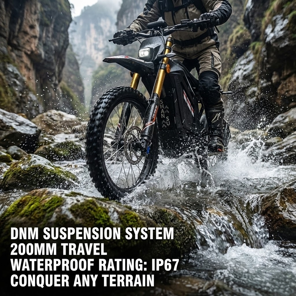 | Front Suspension | DNM Hydraulic Inverted Telescopic (Adjustable), 200mm Travel |
