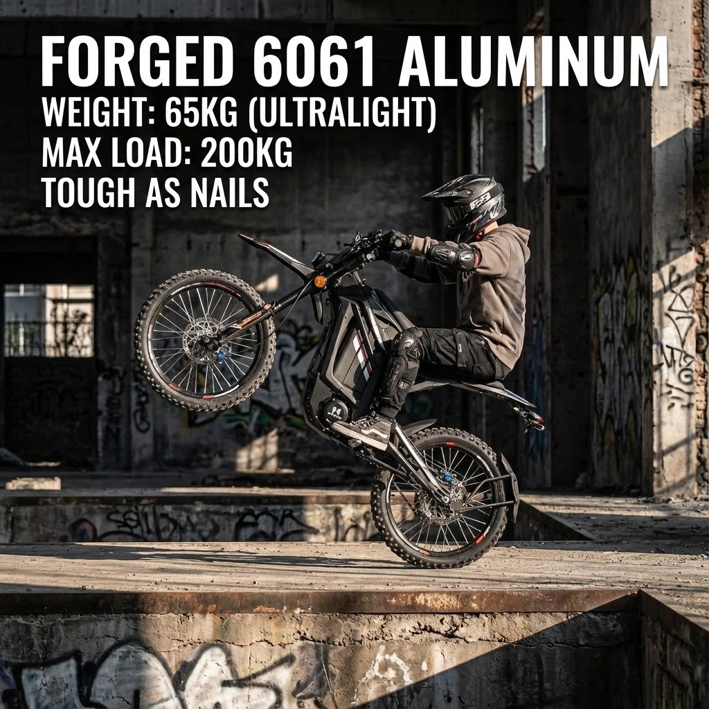 Forged 6061 Aluminum Frame – lightweight 65 kg, supports up to 200 kg